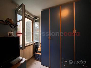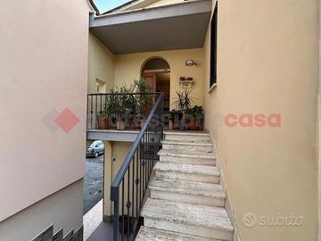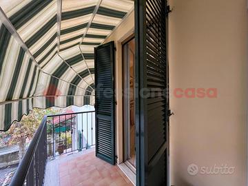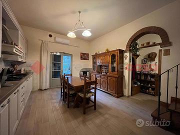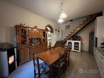 Al primo piano, salendo tramite la scala in legno interna, troviamo il comodo soggiorno con balcone, il secondo ingresso dell'immobile, il servizio finestrato ristrutturato utile alle due camere da letto, di cui una matrimoniale con balcone. Subito sopra la scala in legno è presente l'accesso tramite scala alla mansarda pavimentata e ad un vano ad uso soffitta.