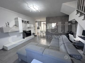 130 mq distribuiti in modo funzionale, con ambienti luminosi grazie alla tripla esposizione e finiture di alto livello. La zona giorno è composta da un ampio e raffinato soggiorno da cui si accede direttamente alla zona cucina, l'ambiente è spazioso, ideale per la quotidianità e i momenti di convivialità.