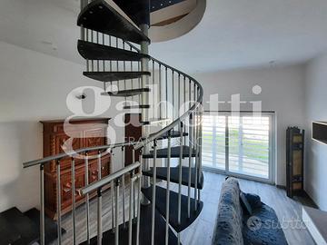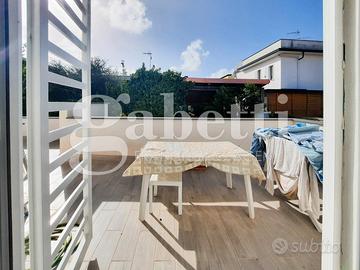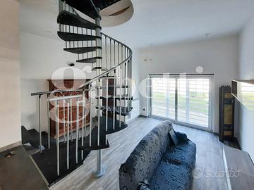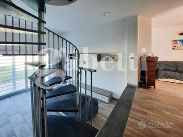Piano Terra di 60 Mq con Soggiorno Living , zona disimpegno che porta alla cucina e un bagno con terrazzo di 20 mq , Piano Primo di 50 Mq è dedicato alla zona notte con due ampie camere da letto e un bagno , presenti due balconi.