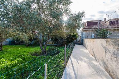 La proprietà gode di un doppio ingresso su due strade diverse e di un doppio giardino può essere facilmente divisa e messa da subito a reddito separando il piano terra dai due monolocali che hanno accesso tramite la scala esterna .