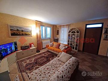 VILLETTA INDIPENDENTE - Porzione di villa bifamiliare - AMPIO GIARDINO e BOX DOPPIO. Scopri questa splendida villetta bifamiliare in vendita, situata in una zona tranquilla e prossima al centro cittadino. Costruita nel 2007, questa proprietà si presenta in ottimo stato di conservazione e offre un'accogliente atmosfera familiare. Con una superficie commerciale di 180 m² (PT 60 mq - P1 55 m2 + 5 mq Balcone - Cantina 60 mq - Box doppio 30 mq - Giardino e verande 200 mq), si sviluppa su due livelli, oltre a una cantina, garantendo ampi spazi per ogni esigenza. Al piano terra, un ingresso pedonale coperto ti accoglie in un luminoso salone che comunica con una cucina abitabile, perfetta per momenti di convivialità. Il giardino privato, ben curato e dotato di privacy, si estende su tre lati dell'abitazione, offrendo uno spazio ideale per il relax all'aria aperta. Non perdere l'occasione di goderti il secondo porticato, perfetto per cene estive. Al primo piano, una scala lineare conduce a due camere matrimoniali con balcone e a una camera singola, tutte spaziose e luminose. Il grande servizio è funzionale e ben distribuito. Il piano interrato comprende un locale tecnico, una lavanderia e un ampio spazio adibito a taverna, ideale per feste e riunioni con amici. La villetta è dotata di impianto di riscaldamento a gas recentemente sostituito, impianto di condizionamento a split e infissi in alluminio taglio termico ed oscuranti a gelosia orientabile in allumino per un comfort ottimale. Inoltre, il sistema fotovoltaico da 3 KW (anno di installazione 2014) contribuisce all'efficienza energetica della casa, classificata in classe B con un consumo di energia di 76,07 kWh/m² anno. Non dimenticare il box doppio e il sistema di allarme recente che garantiscono sicurezza e comodità. Questa è l'opportunità che stavi cercando! Contattaci per ulteriori informazioni e per prenotare una visita.