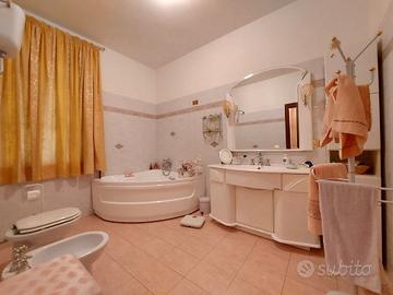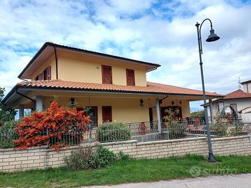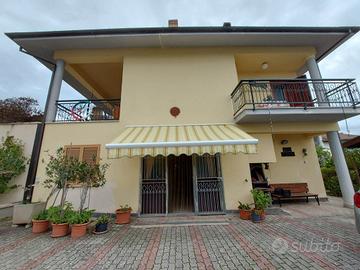 Sita in zona residenziale si sviluppa su tre livelli ed è così composta. Nel piano S1 ampia taverna con camino funzionante, bagno di servizio, ed ulteriore tre ambienti/stanze. Al piano di ingresso accediamo nell'ampio salone che ci da l'accesso all'ampio porticato ed al giardino circostante; proseguendo abbiamo la cucina abitabile, la camera da letto matrimoniale ed il bagno finestrato. Al piano superiore due camere da letto matrimoniali, una camera singola ed un ulteriore bagno. La struttura e stata realizzata a metà degli anni novanta e presenta infissi in legno doppio vetro restaurati.