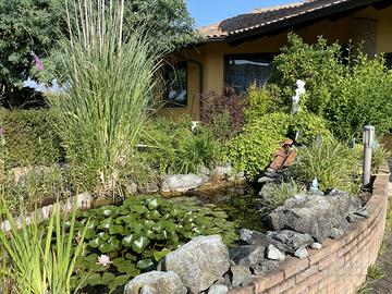 All'esterno, un ampio giardino piantumato circonda la proprietà, offrendo uno spazio ideale per momenti di relax e svago all'aria aperta. Un ampio portico ti permette di godere di piacevoli pranzi e cene all'aperto in compagnia di amici e familiari.
