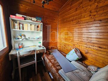 Al piano terra troviamo un comodo soggiorno doppio, cucina abitabile, bagno finestrato con box doccia e vasca, luminosa camera da letto; il piano superiore è una graziosa baita in legno composta da ampia zona giorno, due camere da letto, cameretta, secondo bagno e un bel terrazzino con esposizione sul mare.