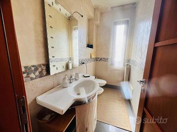 Questa splendida villa indipendente con ingresso esclusivo, su due livelli con giardino circostante è un'oasi di tranquillità . Con 5 ampi vani e 2 bagni, offre uno spazio abitativo perfettamente distribuito per garantire il massimo comfort e privacy. Le condizioni interne sono impeccabili, con un piano rialzato che vanta un luminoso e doppio soggiorno, una cucina abitabile, tre camere da letto, due bagni, ripostiglio e un bellissimo terrazzo a livello di 70 mq ideale per momenti di relax all'aria aperta. Il piano seminterrato è versatile e funzionale, con una parte adibita a deposito/taverna di 150 mq e parte a garage di 78 mq. Completa la proprietà un terrazzo di copertura pavimentato e illuminato, pannelli solari per un'efficienza energetica ottimale e una colonnina Enel per la ricarica dei veicoli elettrici. Questa villa è l'incarnazione della vita di lusso e di comfort, pronta ad accogliere una nuova famiglia in cerca di un rifugio elegante e accogliente.