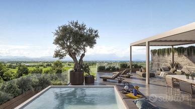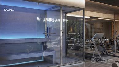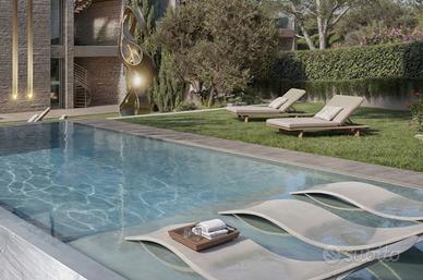 Dal living un disimpegno conduce ad una master-suite con bagno privato ed una spaziosa cabina armadio, proseguendo si trovano altre due eleganti camere con altro bagno completo, il tutto con affaccio su giardino o terrazzo, dall'interno una scala collega all'area benessere/SPA uno spazio esclusivo impreziosito da grandi vetrate che si affacciano nel giardino segreto un angolo riservato e protetto in totale privacy per momenti di puro relax, l'area SPA comprende una sauna, una palestra attrezzata, una raffinata cantina per la degustazione vini ed un bagno completo, all'esterno una scala privata conduce alla spettacolare zona sundeck, un vero e proprio giardino pensile con mini piscina, pergola ventilata e predisposizione per una cucina esterna, un ambiente esclusivo con vista incantevole sul Lago di Garda.
