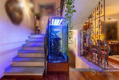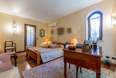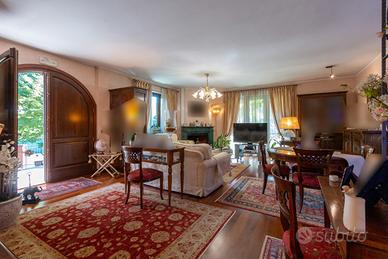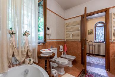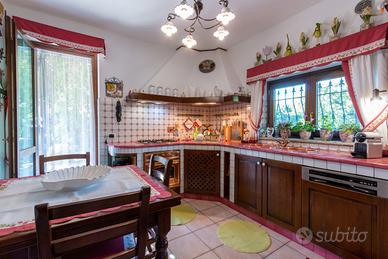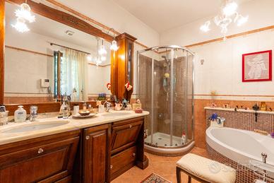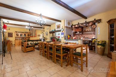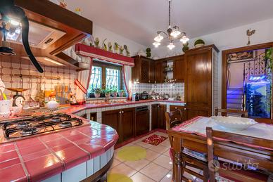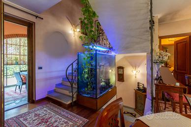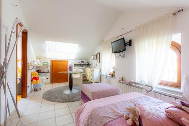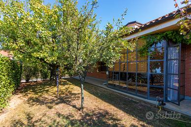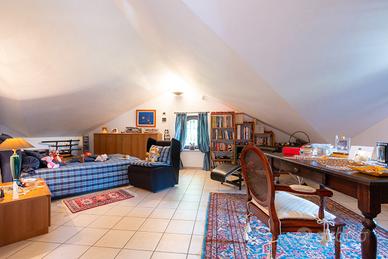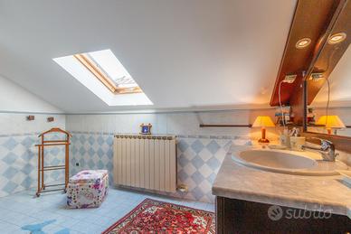 PIANEZZA Via Rosta, in zona tranquilla ed immersa nel verde proponiamo in vendita signorile villa unifamigliare disposta su tre livelli abitativi, costruita a fine anni novanta. L'immobile è composto da ingresso living su ampio salone con camino, cucina , ampia camera matrimoniale con camino e con bagno privato, ulteriore bagno; tramite la scala interna ed escensore che collega tutti i piani, si ha accesso al piano sottotetto composto da dua ampi ambienti sfruttabili come camere e 2 servizi. Il sottotetto è alto e luminoso ed è dotato di finestre e di velux. Interrato con ampio locale sfruttabile come tavernetta, totalmente e finemente rifinito, dotato di camino e forno a legna, altro locale sfruttabile come palestra, cantina e accessori. Autorimessa per piu' auto. Completa la soluzione il portico con affaccio sul giardino soleggiato e piantumato dotato irrigazione automatica con cisterna per la raccolta dell'acqua. L'immobile risulta molto luminoso grazie all'ottima esposizione. Le finiture sono ottime, abbiamo vetri blindati in tutta la casa, ascensore, 2 camini, antifurto.
