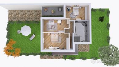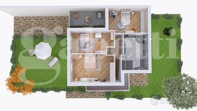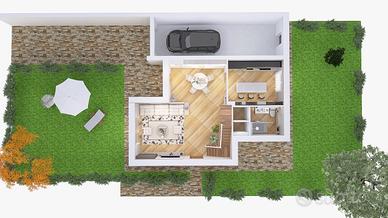 Porzione di villa di prossima realizzazione con inizio cantiere previsto per dicembre 2025, caratterizzata da facciata in intonaco e da un meraviglioso giardino pianeggiante e soleggiato disposto sui tre lati. La villa è disposta su un piano terra con ingresso living su ampio salone con accesso al terrazzo e al giardino, cucina abitabile con uscita sul terrazzo, disimpegno, grande camera e bagno, oltre a box auto doppio. La scala in muratura conduce al piano superiore dove abbiamo un sottotetto fruibile, molto luminoso, dotato di finestre e abbaini e di un terrazzino, organizzato con tre spaziose camere e un ampio bagno.