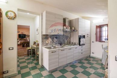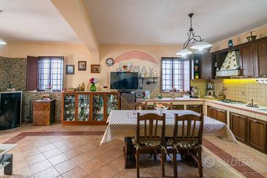 La cucina, spaziosa e abitabile, è completamente arredata.