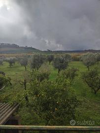 Il terreno circostante tutto pianeggiante è di circa 4500 mq, con due pozzi, sono presenti alberi di ulivo e frutta varia.