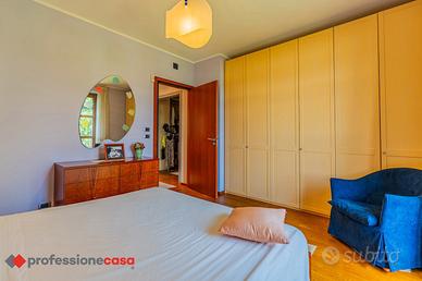 Tramite scala posta a ridosso del salone si accede al piano superiore; un ampio disimpegno consente accesso alle prime due camere di generose dimensioni ed al bagno dotato di vasca. Il corridoio porta direttamente alla camera matrimoniale preceduta dalla cabina armadi e dal bagno dedicato dotato di doccia. Tutte le camere del piano notte sono parquettate.
