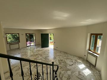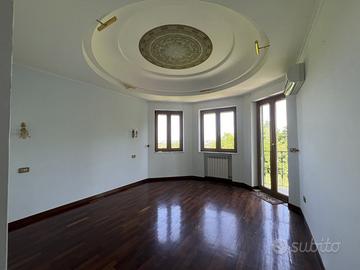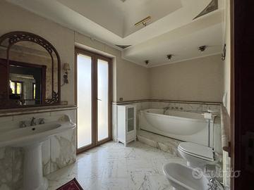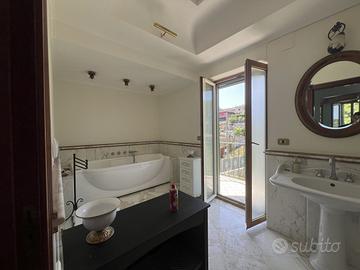 Nel cuore luminoso dei Campi Flegrei, a pochi minuti dal centro di Pozzuoli, un unico cancello carrabile apre il sipario su un piccolo universo esclusivo: due ville gemelle, appena ristrutturate, che condividono solo l'ingresso mentre tutto il resto--impianti, accessi, spazi interni ed esterni--è pensato per garantire autonomia e assoluta privacy. Ogni residenza conta circa 400 m² distribuiti su quattro livelli, collegati da un'elegante scala in marmo che diventa la spina dorsale di una scenografia domestica impeccabile. Al piano terra la cucina-living, impreziosita da un camino e chiusa da vetrate scorrevoli, dialoga a tu per tu con il giardino mediterraneo; un bagno di cortesia rende questo ambiente il cuore conviviale della casa. Salendo, il salone triplo--bagnato di luce naturale grazie alla triplice esposizione--si affianca a uno studio appartato e a un secondo servizio. Il piano successivo ospita la suite padronale: vasca idromassaggio, cabina armadio e un affaccio che regala lo spettacolo del mare, accanto a due ulteriori camere e un bagno. Poi, come un palco sospeso sul Golfo di Pozzuoli, compare il roof-terrace di oltre 100 m²: parapetti in vetro, orizzonte a perdita d'occhio sulle isole flegree, uno spazio che di giorno è solarium e di sera lounge o cinema all'aperto. All'esterno, altri 400 m² di privacy per ciascuna villa mescolano prato mediterraneo, patio in porfido, un forno a legna con cucina outdoor e la predisposizione per una piscina fuori terra. L'accesso al box auto e ai posti interni è separato, così che le due abitazioni restino davvero indipendenti; a tenerle insieme resta solo il varco d'ingresso, custode silenzioso di questo micro-compound. La qualità costruttiva parla attraverso dettagli concreti: parquet in rovere nelle zone notte, gres large-format nelle living, infissi a taglio termico effetto legno, impianto domotico luci-clima e climatizzazione canalizzata. Il comfort termico è garantito da un doppio impianto