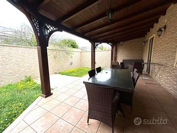 In zona residenziale e vicina a tutti i servizi proponiamo in vendita ampia e graziosa villetta indipendente. La proprietà che vanta una superficie di circa 120 mq è composta da ingresso disimpegno, ampio soggiorno su sala pranzo con camino a vista, luminosa cucina abitabile, due confortevoli camere da letto matrimoniali di cui una con cabina armadio, due bagni uno con doccia e l'altro con vasca, un comodo bucataio con zona lavanderia e una graziosa chiostrina. Completa la soluzione un giardinetto sia antistante che retrostante di circa 150 mq ideali per godere di piacevoli momenti all'aria aperta e un comodo garage di circa 20 mq.