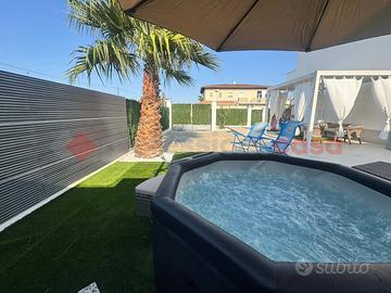 NOTA BENE LA SOLZUONE è LOCATA FINO A MAGGIO 2026. IL PERIODO ATTUALMENTE DISPONIBILE è GIUGNO E LUGLIO CON CANONE DA PATTUIRE. AGOSTO NON DISPONIBILE. Villa indipendente su due livelli in locazione per trasfertisti e brevi periodi, libera su tre lati, con piscina privata e giardino esclusivo di 300 mq, situata in un contesto riservato e tranquillo. Questa proprietà unica combina eleganza e funzionalità, offrendo spazi ideali per vivere in armonia con la natura senza rinunciare al comfort. La superficie interna di 60 mq è stata progettata per ottimizzare ogni ambiente e garantire un'atmosfera accogliente e moderna. Al piano terra, l'ingresso si apre su un luminoso open space con cucina abitabile, perfetto per momenti di convivialità e relax. La zona notte comprende due camere da letto e due bagni, pensati per soddisfare ogni esigenza abitativa. All'esterno, il giardino privato rappresenta un'oasi di pace, arricchita da una piscina esclusiva, ideale per trascorrere giornate estive in totale relax o per organizzare eventi all'aperto. Questa villa è la soluzione perfetta per chi cerca una locazione che unisca privacy, stile e comfort.
