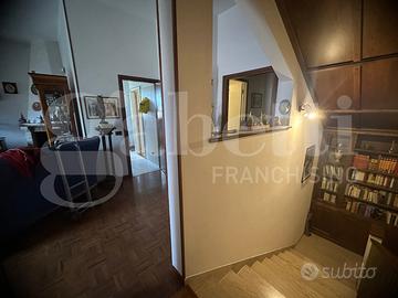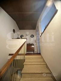 Porzione di casa indipendente, disposta su tre livelli e servita da un comodo ascensore privato: la struttura portante, solida e ben progettata, offre ampi margini di personalizzazione necessitando di una ristrutturazione completa. Al piano terra si sviluppano le aree di servizio (lavanderia, cantina e un garage) che si affacciano direttamente sul piccolo giardino esclusivo. Salendo al primo piano, ingresso ampia scala che porta al piano superiore dove si sviluppa l'unità abitativa: luminoso soggiorno con ampie vetrate che incorniciano la vista sul balcone, lasciando filtrare la luce naturale che rende ancora più accogliente l'atmosfera intorno al camino. Il reparto notte, separato dalla zona giorno, è composta da due camere matrimoniali, una camera/studio e due bagni.