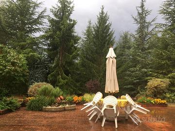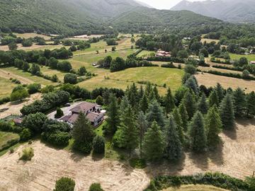ca mq.5.000 curati a "parco" interessati densamente da alberature ad alto fusto; mq. 2.000 con alberi da frutto (ciliegi, mele, pere, prugne) e piccolo orto recintato (mq. 100 con un albero di fichi ed uno di cachi) con doccia esterna e ca mq 10.000, destinata a prato naturale.
