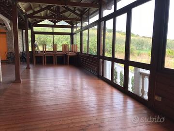 In passato adibita a sala ricevimenti, attualmente la struttura è suddivisa in tre appartamenti indipendenti di varie metrature, da personalizzare e completare a proprio piacimento. Fanno parte della proprietà: una piscina ideale per rilassarsi o intrattenere gli ospiti, un grande gazebo adiacente alla piscina perfetto per pranzi o cene all'aperto, una tettoia con barbecue, un forno a legna e una cucina esterna per vivere l'estate in pieno stile. Inoltre la proprietà è circondata da 5000 mq di terreno che assicurano privacy, pace immersa nel verde, con ampio potenziale sia per uso privato che imprenditoriale.