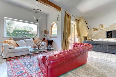 OLGIATA - VILLINO ELEGANTE E LUMINOSO NEL PRESTIGIOSO CONSORZIO All'interno dell'esclusivo Consorzio Olgiata, con servizio di guardiania H24, immerso nel verde e dotato di ristorante bistrot, bar, campo da golf, maneggio, country club con tennis e aree gioco per bambini, proponiamo in vendita un'elegante proprietà situata in posizione riservata, a breve distanza dal rinomato Ristorante Ribot. Il villino, di circa 200 mq distribuiti su due livelli, gode di doppia esposizione ed è circondato da due curati giardini, fronte e retro, arricchiti da alberature e vegetazione mediterranea. L'immobile è stato recentemente ristrutturato con materiali di pregio. La proprietà dispone inoltre di un secondo accesso indipendente dal piano seminterrato completamente sbancato. Composizione interna: Ampio salone di rappresentanza di circa 65 mq con camino, impreziosito da decorazioni artistiche in foglia d'oro Tre grandi vetrate che donano luminosità agli ambienti Doppia zona living e area dedicata a pranzi formali Family room per momenti conviviali Cucina abitabile Bagno per ospiti con doccia Zona notte: Tre camere da letto Master suite con cabina armadio a 10 ante e bagno en suite con vasca idromassaggio (area relax tipo spa) Due camere, entrambe con zona studio Secondo bagno con doccia Accesso diretto al patio esterno da tutte le camere Completano la proprietà una lavanderia e due posti auto situati all'ingresso. Soluzione ideale per chi cerca privacy, comfort e un contesto esclusivo a pochi minuti dalla città. 65 euro condominio isola inclusa disinfestazione mensile per ciascun giardino + 70 euro servizi consorzio