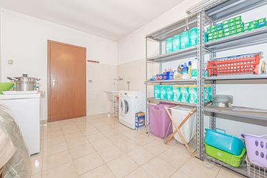 Al piano interrato l'unità immobiliare dispone di una tavernetta, una lavanderia, una cantina, un box auto e due posti auto.