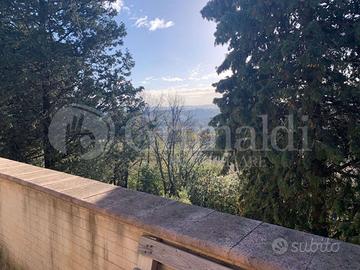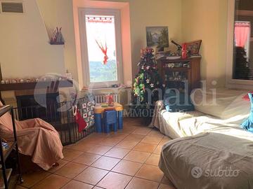 SAN MARCELLO - CIELO TERRA abbinato ad un lato suddiviso attualmente in DUE APPARTAMENTI con CORTE ESCLUSIVA, TERRAZZE e GARAGE così meglio descritto: PT ingresso, ampio soggiorno con camino, camera matrimoniale, bagno, ripostiglio ed accesso al garage; 1 P ingresso, terrazza di mq 40, soggiorno con camino, cucinino, due bagni, camera matrimoniale, cameretta, terrazzino e SOPPALCO. Corte esclusiva di mq 2000 circa. Cantina al piano seminterrato con locale tecnico. Classe energetica in fase di richiesta.
