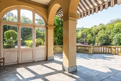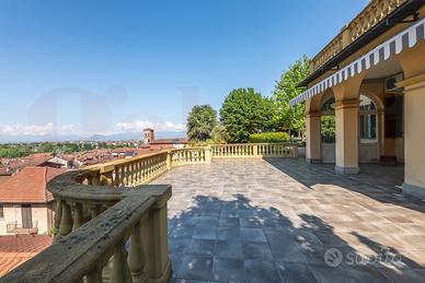 Nella tranquillità della collina di Moncanino, a pochi passi dal centro storico, villa d'epoca con terrazzo panoramico e giardino privato .
