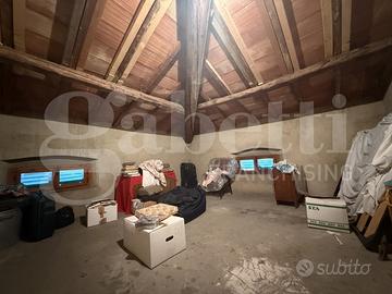 L' immobile si sviluppa su due livelli: al piano terra l' ampio ingresso divide la cucina abitabile dotata di termocamino dal salone. E' presente un'altra stanza che può esser inglobata nella zona giorno ampliandola ulteriormente. Troviamo poi una comoda lavanderia, il bagno finestrato e un ripostiglio sottoscala. Comunica con il piano terra un ampio garage di cc 50 mq con doppio accesso. Tramite scala interna accediamo al primo piano composto da 5 stanze matrimoniali, una camera media e bagno. Attualmente questo piano è adibito a secondo appartamento utilizzando due stanze come sala e cucina. Al piano primo troviamo una terrazza abitabile di cc 50 mq comoda come prendisole o zona relax. Proseguendo troviamo un ampio sottotetto dove puoi ricavare ulteriori locali.