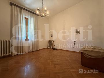 L' immobile si sviluppa su due livelli: al piano terra l' ampio ingresso divide la cucina abitabile dotata di termocamino dal salone. E' presente un'altra stanza che può esser inglobata nella zona giorno ampliandola ulteriormente. Troviamo poi una comoda lavanderia, il bagno finestrato e un ripostiglio sottoscala. Comunica con il piano terra un ampio garage di cc 50 mq con doppio accesso. Tramite scala interna accediamo al primo piano composto da 5 stanze matrimoniali, una camera media e bagno. Attualmente questo piano è adibito a secondo appartamento utilizzando due stanze come sala e cucina. Al piano primo troviamo una terrazza abitabile di cc 50 mq comoda come prendisole o zona relax. Proseguendo troviamo un ampio sottotetto dove puoi ricavare ulteriori locali.