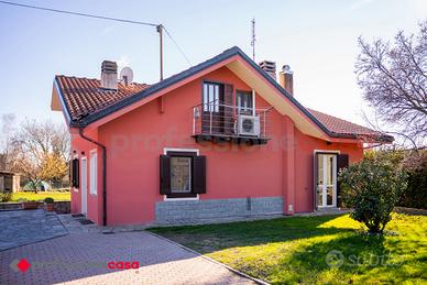 SAN SECONDO. Nei pressi di Miradolo, posta in contesto residenziale, la PROFESSIONECASA di Pinerolo è lieta di proporvi una villa indipendente circondata da un giardino di circa 1500 mq, ideale per chi cerca privacy e spazio. L'unicità della soluzione immobiliare proposta è l'incantevole vista sulla catena montuosa con il Monviso come protagonista. Gli spazi interni della villa risultano ben distribuiti e offrono un'ottima opportunità di vivere l'abitazione al meglio. Al piano terra presente una zona giorno, sala pranzo con cucina a vista. Inoltre un luminoso soggiorno con ampie vetrate risulta il posto ideale per rilassarsi godendo della vista sul paesaggio circostante. Due camere da letto ,un servizio e un comodo ripostiglio. Al primo piano, raggiungibile attraverso una scala posta nel soggiorno è presente la camera da letto patronale con cabina armadi dedicata, un locale lavanderia, un servizio e un ulteriore cameretta. All'interno dell'abitazione sono presenti condizionatori( caldo /freddo), impianto di allarme, infissi in PVC. Nel piano interrato un' autorimessa, cantina e un locale che potrebbe essere adibito a tavernetta. Inoltre nel giardino circostante alla casa è presente un'ampia tettoia con forno, area barbecue e possibilità di rimessaggio coperto per un ulteriore vettura.