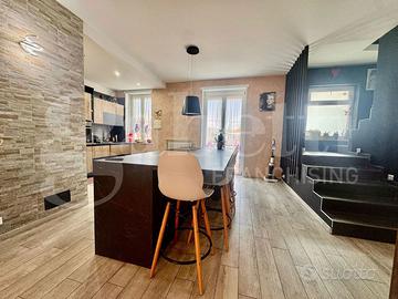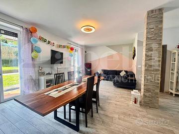 In zona residenziale e leggermente precollinare, proponiamo porzione di casa libera tre lati con ingresso carraio e pedonale indipendente. Piano terreno: ingresso, box auto, cantina, lavanderia e centrale termica; Piano primo: ingresso, soggiorno doppio con uscita su giardino di proprietà, cucina abitabile a vista, servizio e balcone; Piano secondo mansardato (con abitabilità): disimpegno, due camere (di cui una con balcone) ed ampio servizio con doccia e vasca). Giardino su due lati angolari e cortile su fronte. L'immobile risulta ristrutturato quasi totalmente nel 2021 ed è dotato di riscaldamento sia a termopellet che con caldaia a condensazione a metano. Zona tranquilla ma nello stesso modo comoda alla provinciale. DA VEDERE!