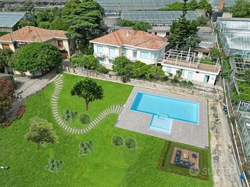 Sulle prime colline di Sanremo, proponiamo in vendita una villa su due livelli da ristrutturare, di 235 mq abitativi con piena esposizione sud e composta da: