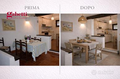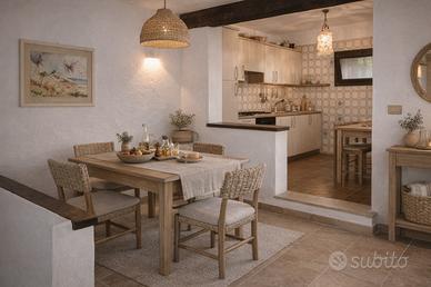 Gli ambienti interni offrono una distribuzione comoda e versatile: accogliente soggiorno con camino e zona pranzo, cucina separata, due camere matrimoniali, di cui una con bagno en suite, secondo bagno.