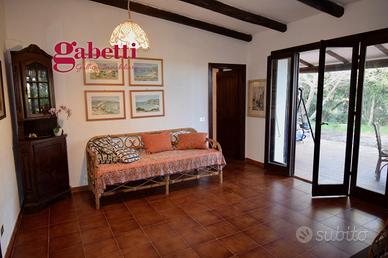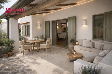Avvolta dalla tipica macchia mediterranea, la villa è circondata da un ampio giardino privato interamente recintato, sia sul fronte sia sul retro, perfetto per famiglie con bambini o per chi ama vivere gli spazi all'aperto in totale tranquillità.