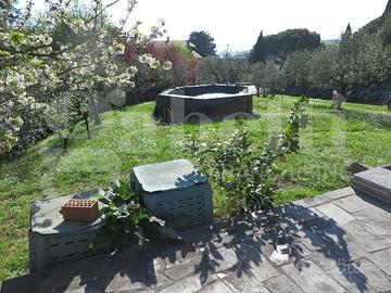 SARZANA: nella prima collina vendiamo indipendente su tre lati con ampio giardino piantumato ad olivi con parcheggio e cancello elettrico, la casa è di ampia metratura con doppi servizi e doppi ingressi. Ampio porticato abitabile e riscaldato. Ottime finiture con riscaldamento a gas, con pompe di calore, pellet e impianto fotovoltaico. L'immobile si sviluppa su unico piano ed è abitabile subito con due annessi nel giardino. La zona è molto tranquilla e non isolata a 10 minuti di orologio da Sarzana. Rif.935