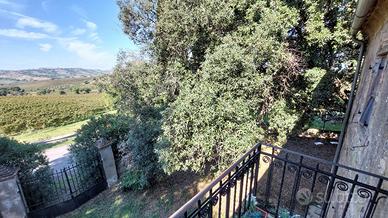 La proprietà è circondata da circa 2 ettari di terreno, con 120 ulivi in piena produzione e 1.700 mq di vigneto iscritto nella DOCG del Morellino di Scansano.