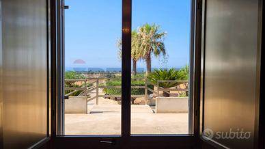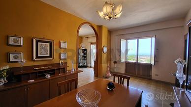 Rif: 40001038-123 Classe energetica: E - EPglnr: 128.07 kWh/m² Villa di campagna, in posizione panoramica con vista a 360 gradi sul mare e sulla campagna circostante. La proprietà è costituita da un appartamento già abitabile in ottimo stato di manutenzione che si sviluppa al piano terra e composto da un'ampia zona living, collegata con soggiorno, angolo studio, 3 camere da letto e 2 bagni. Adiacente si trova ampia veranda panoramica e versatile. Il piano superiore, accessibile da scala esterna, è al momento allo stato rustico privo di tramezzature interne ed infissi e può costituire una unità immobiliare anche autonoma. La copertura dell'edificio è costituita da una terrazza accessibile e da cui godere una vista mozzafiato sulla zona circostante, un grande solarium di 160 mq. Completa la proprietà uno stacco di terreno di forma regolare, antistante la villa, e un orto ben curato sul retro della proprietà, per una superficie complessiva di circa 10.000 mq N.B. Alcune foto sono una possibile rappresentazione del risultato di ristrutturaione, La proprietà si presta per essere utilizzata a scopo residenziale, o anche come struttura ricettiva in posizione tranquilla e vicina alle zone turistiche del nostro territorio.