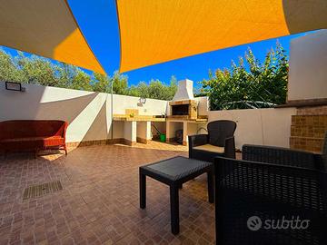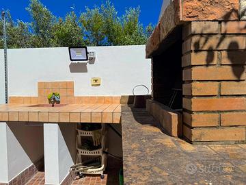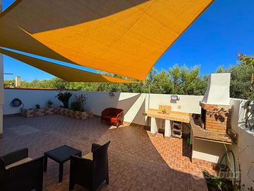 barbecue e un tendaggio a vela, perfetto per godersi il relax all'aria aperta nelle calde