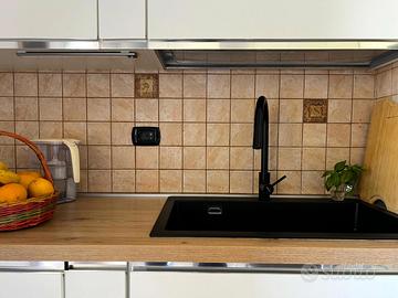 * mentre la moderna cucina abitabile, dotata di ogni comfort e con un ampio piano di