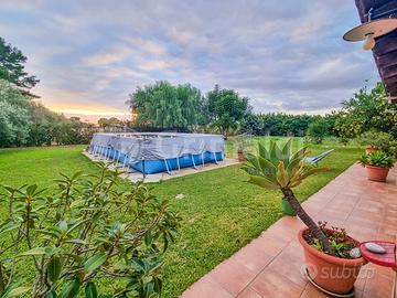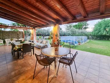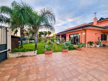 A Fontane Bianche, a pochi minuti dal mare, proponiamo una splendida villa immersa in un giardino di oltre 3.200 mq, arricchita da verande, dependance e spazi esterni attrezzati.
