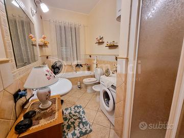 Il secondo appartamento dispone di cucina abitabile con uscita su una veranda di 50 mq attrezzata con cucina in muratura, forno per pizze e doccia, una camera da letto e un bagno.