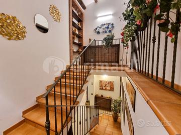 Primo piano: collegato internamente al primo appartamento, si sviluppa una suite matrimoniale con bagno privato e accesso a un ampio terrazzo con pergolato, ideale per momenti di relax.