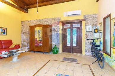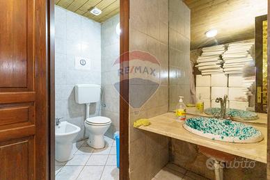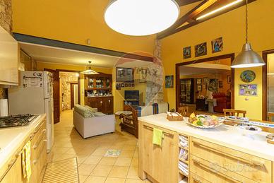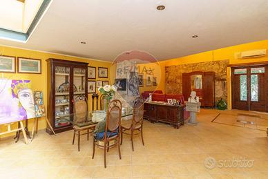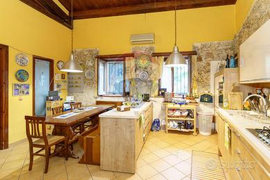 A fianco dell'abitazione troviamo il locale commerciale, attualmente adibito a location per eventi; il salone si estende per una superficie di circa 370 mq suddiviso in una zona utilizzata come cucina o ripostiglio e la restante superficie si articola per essere impegnata sia per eventi quindi commerciale, sia, come previsto dal Prg vigente e previo adeguamento funzionale interno per attività Turistica Ricettiva.
