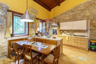 La villa è composta da ingresso su ampio soggiorno, cucina abitabile ampia e luminosa, due bagni e tre camere da letto, si sviluppa su due livelli
