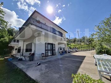 Proponiamo in vendita, sulla collina di San Sisto, al confine con la città di Broccostella, villa unifamiliare su due livelli in buono stato. L'abitazione si compone al piano terra da ampio ingresso, zona adibita a taverna con cucina in muratura e zona pranzo con termo-camino, bagno di servizio e dispensa. Al piano terra abbiamo anche una stanza adibita a centrale termica, cantina e ampio garage di 40 mq circa con basculante automatica. Una scala in marmo ci fa accedere al primo piano dove si sviluppa l'abitazione principale con ingresso, ampio salone con camino, con accesso diretto alla cucina abitabile con dispensa, studio, quattro camere da letto e doppi servizi. La villa è circondata da terreno circostante, parte adibito principalmente a uliveto per complessivi 2.400 mq circa.