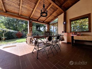 Professionecasa propone in esclusiva Prestigiosa Villa immersa nel verde in prossimità del centro cittadino. In posizione riservata, ma prossima alle principali vie di snodo, questa soluzione si dispone su due livelli abitativi circondati da spazi esterni ben curati e totalmente recintati. All'apertura del cancello automatizzato, il viale d'ingesso, costeggiato da aiuole, conduce ad una area attrezzata con pergolato per la sosta delle auto; qui il vialetto si dirama consentendo l'ingresso all'abitazione sia dalla scalinata principale, sia attraversando la bellissima veranda attrezzata sul retro che introduce alla cucina. L'ingresso principale, illuminato da una splendida vetrata artigianale, si apre sul grande salone formale comunicante con l'ampia sala da pranzo. In adiacenza sullo stesso piano si trovano uno studio, una camera da letto con veranda privata, un bagno completo e una grande cucina con camino e con accesso diretto alla veranda che si apre sulla porzione di giardino retrostante. Al primo piano, raggiungibile da una maestosa scala in legno interna, si trovano quattro camere da letto, ognuna con balcone verandato privato, due bagni e una ulteriore veranda esclusiva della camera patronale. Al terzo livello si trova un piano mansardato , attualmente da rifinire, dotato di predisposizione per un'area living, cucina, due ulteriori camere da letto e due bagni. Completa la proprietà il piano seminterrato con box auto doppio, locale termico e cucina rustica. L'immobile è dotato di impianto solare termico e gode di ottimo stato conservativo. Per prenotare una visita o ricevere una consulenza contattare il numero o visitate la nostra agenzia di Isola del Liri in Via Napoli 24.