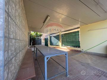 Esternamente al piano terra si sviluppa lo spazio esterno che segue il perimetro del fabbricato, con punto acqua, servizio igienico e ripostiglio esterno. Da scala esterna alla villetta si accede al terrazzo di circa 100 mq.