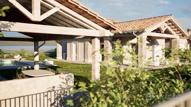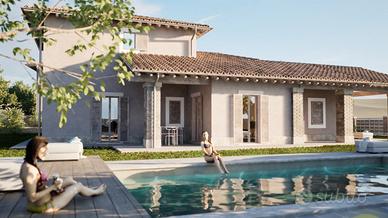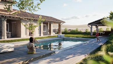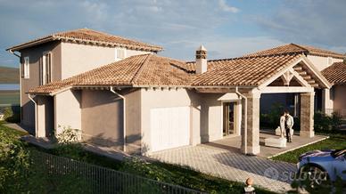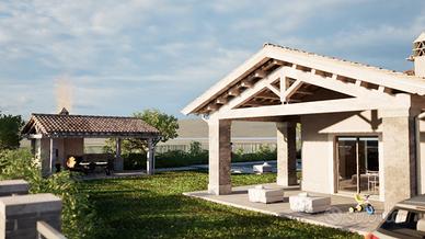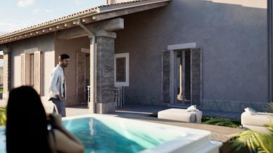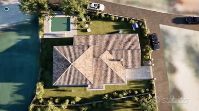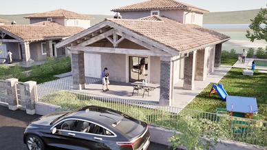 Costruita nel 2025, la villa è dotata di tutti i comfort moderni, tra cui videocitofono, impianto di riscaldamento a pavimento autonomo con pompa di calore, tetto in legno lamellare e sbiancato, pannelli fotovoltaici con 10 kw e climatizzazione. L'interno, in condizioni impeccabili e appena costruita, offre 4 camere da letto, un ampio soggiorno doppio, una cucina con angolo cottura e una sala hobby.