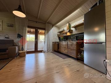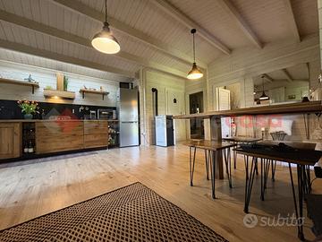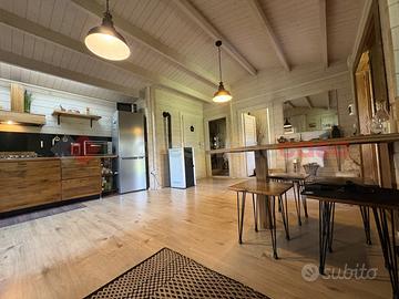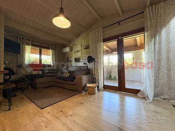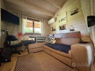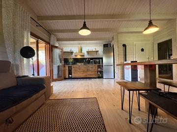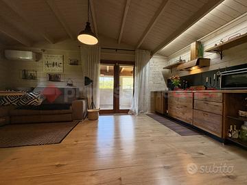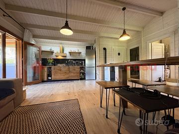 TERRACINA-PORTO BADINO: "Un rifugio esclusivo che può essere vissuto come dimora privata o come destinazione estiva di charme" Adiacente la rotatoria di Porto Badino, a pochi metri dal mare, proponiamo in ESCLUSIVA la vendita di una proprietà che unisce il fascino autentico al comfort più moderno. Circondata da un giardino privato di 700 mq. questa casa in legno che vanta una superficie di 60 mq. realizzata di recente, è stata interamente costruita utilizzando un legno massiccio di elevata coibentazione, grande attenzione al design, alla luce naturale e all'integrazione con il paesaggio, un legno pregiato noto per la sua durabilità, e la straordinaria resistenza agli agenti atmosferici. Questo materiale, oltre a garantire eccellenti performance strutturali e isolanti, conferisce agli ambienti un carattere caldo e inconfondibile. Una veranda in legno e vetro regala una vista suggestiva sul giardino circostante creando un'atmosfera perfetta per momenti di relax. All'interno, si è accolti da un luminoso soggiorno open space, che ospita una moderna cucina attrezzata, completa di piano cottura a gas, forno elettrico e tutti gli elettrodomestici necessari. Dallo spazioso soggiorno si accede direttamente alla camera da letto, con letto king-size e armadio a 4 ante. Adiacente, troviamo un bagno moderno e ben arredato, con una doccia spaziosa, lavabo in ceramica, wc e bidet, che sottolinea il contrasto tra il design contemporaneo e quello tradizionale. Completa un ripostiglio utilizzato anche come lavanderia. All'esterno, il giardino che circonda la proprietà, interamente recintato è coltivato in parte a giardino con prato inglese e in parte con diverse essenze di piante tipiche della macchia mediterranea offrendo la possibilità di stare all'aria aperta, attrezzato con zona barbecue. Un patio accogliente, ideale per pranzi e cene all'aperto, arricchisce l'esperienza, mentre l'ingresso indipendente assicura la massima privacy agli ospiti e ci da la possib