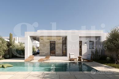 La villa si sviluppa su unico livello, composto da: ingresso su soggiorno living con cucina a vista con affaccio sul giardino e vano ripostiglio/lavanderia. La zona notte è composta da due camerette per ragazzi, camera da letto con cabina armadio e due bagni.