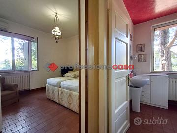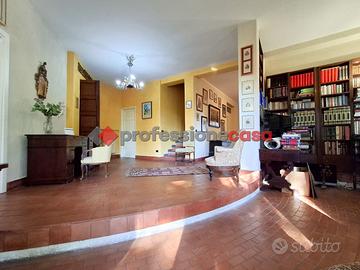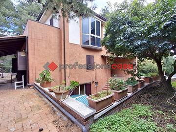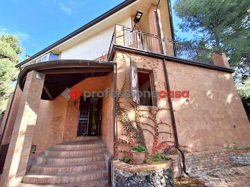 Professionecasa Paesi Etnei propone in vendita una splendida villa singola, situata nel cuore di Trecastagni in zona servitissima a pochi passi da Piazza Sant'Alfio, precisamente in Via Sciuti. La villa si presenta in buone condizioni generali, si sviluppa su due livelli ed è circondata da un ampio spazio esterno di circa 1.000 mq, che comprende aree verdi, terrazze, un portico e un comodo garage di circa 35 mq. La villa è così composta: al piano terra ingresso su luminoso open space, salone doppio, camera da letto con bagno privato, cucina abitabile; il primo piano è composto da due camere da letto, entrambe con bagno in camera e angolo lavanderia con piccola vetrata. Le finiture includono pavimenti in cotto e parquet, infissi in vetrocamera, riscaldamento autonomo, stufa e predisposizione per impianto di climatizzazione. Completano la proprietà un balcone e un terrazzo al primo piano. APE in fase di rilascio.