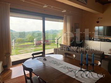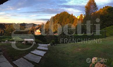 Sulle prealpi biellesi a circa 750 metri di altezza in posizione veramente panoramica con vista mozzafiato sulla pianura fino a Novara, Milano ed alle Alpi Marittime, immersa nella quiete della natura ma a breve distanza dai servizi essenziali, a circa un'ora da Torino e Milano e poco distante dall'Oasi Zegna e dalle piste da sci, proponiamo in vendita splendida villa indipendente circondata da 4000 mq di terreno, costruita nel 2003 con particolare cura nei minimi dettagli e composta da ingresso, salone (di mq 40 circa) con stube Thun autentica , una moderna cucina a vista professionale perfettamente attrezzata, 2 camere, bagno, 2 porticati, ampio balcone e bellissima scala in legno che conduce al soppalco adibito a studio e alla camera matrimoniale con cabina armadio